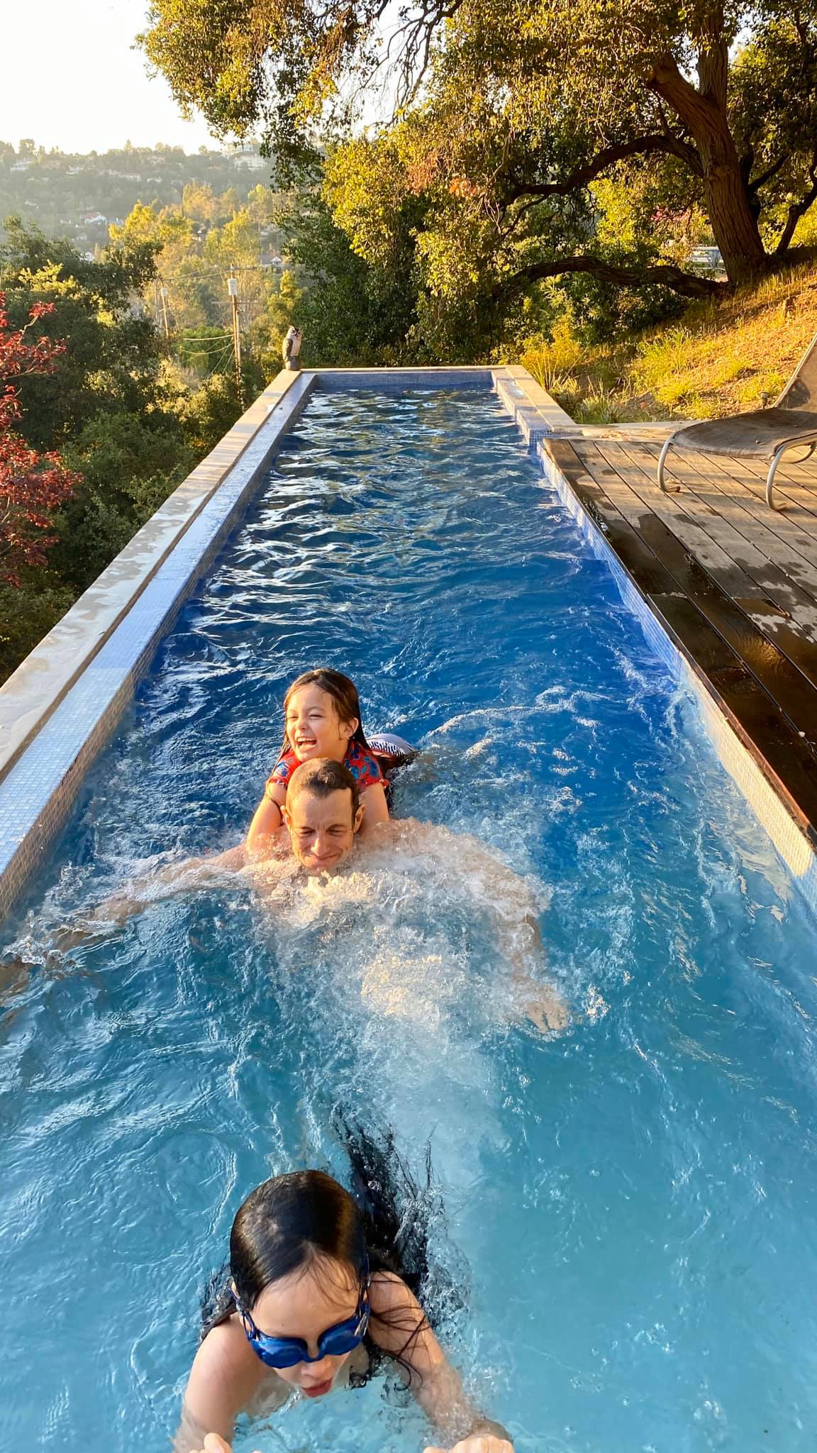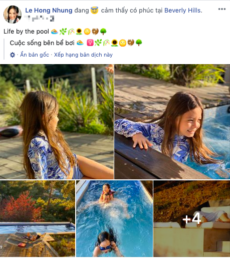 Thời gian qua, Hồng Nhung và các con của mình đều đang trong kỳ nghỉ tại California, Mỹ. Vì Covid-19, nên gia đình cô đều hạn chế ra ngoài và mọi sinh hoạt gần như gói gọn trong ngôi nhà có bể bơi, sân vườn với nhiều cây cối.