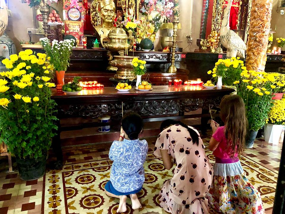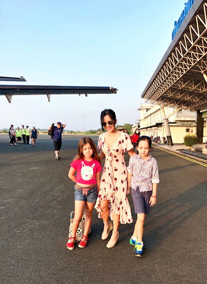 Hai nhóc tì nôn nóng dậy từ lúc 3 giờ sáng. Đây là chuyến lưu diễn dịp Tết và đêm giao thừa trong năm mới 2019. Sau khi đến Rạch Giá, mẹ con Hồng Nhung đã đến thắp hương cho đền thờ người anh hùng Nguyễn Trung Trực.