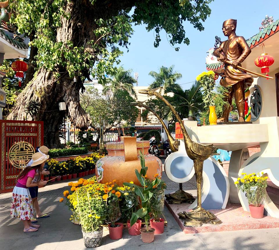 Lên máy bay trời tờ mờ, để lúc đáp đã thấy nắng sớm lên. Anh hai quá phấn khích, vì sao cả sân bay chỉ có một máy bay? Mẹ bảo chắc vì chúng ta quá VIP. Ta sẽ bắt đầu bằng chuyến thăm đền người anh hùng dân tộc Nguyễn Trung Trực, được thắp nhang, vái lạy… và được học một câu chuyện lịch sử của quê hương Việt Nam”.