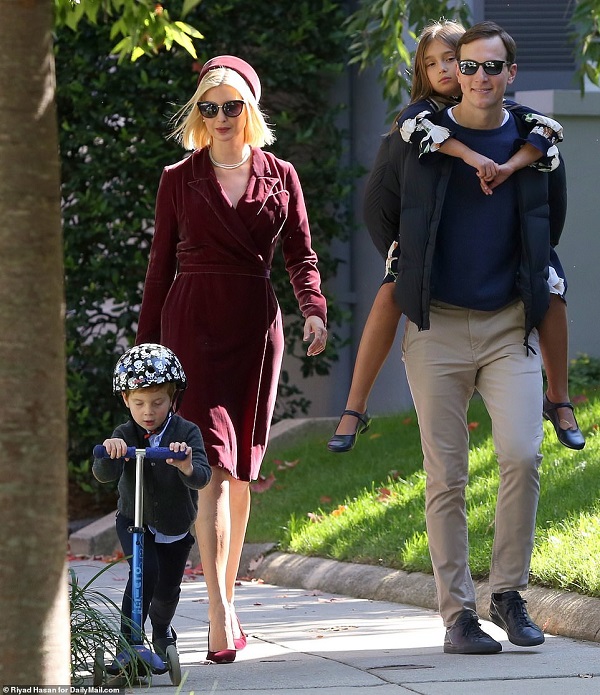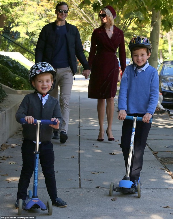 Doanh nhân Jared Kushner và con gái Tổng thống Trump hiếm hoi xuất hiện trước công chúng cùng nhau với các con là hai người con trai của cặp đôi là Joseph (6 tuổi) và Theodore (3 tuổi) và bé Arabella (8 tuổi)