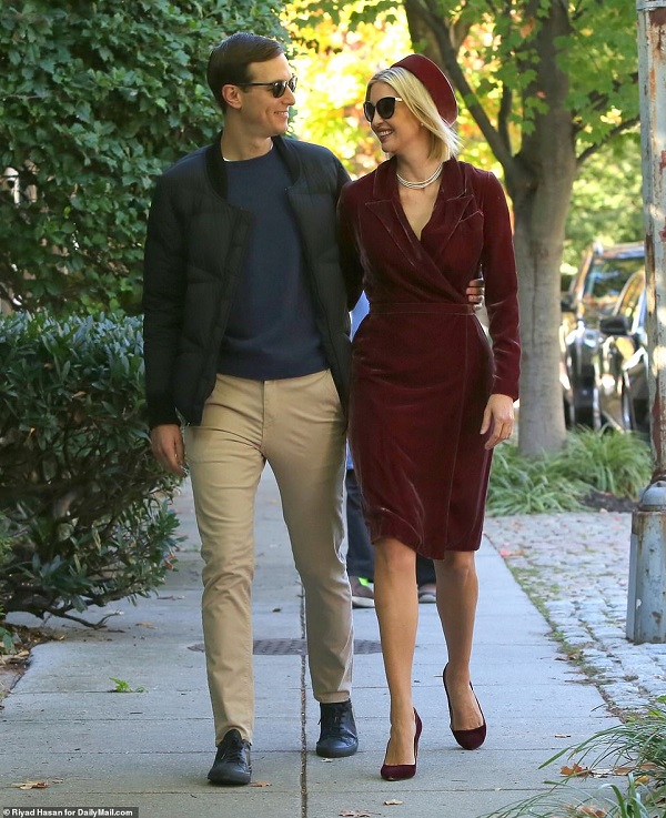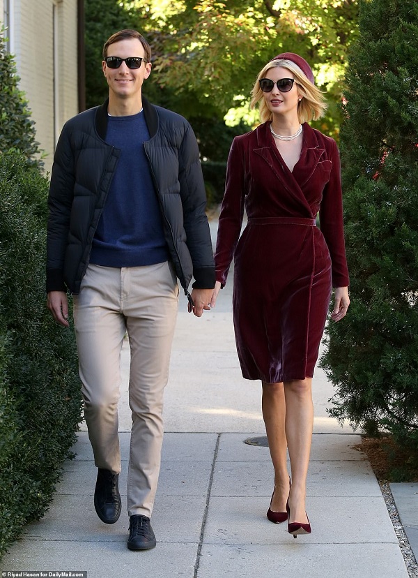 Cả hai vợ chồng nhà Ivanka Trump tay trong tay vô cùng tình cảm, thậm chí mắt kiếng đen đeo “couple” cùng nhau