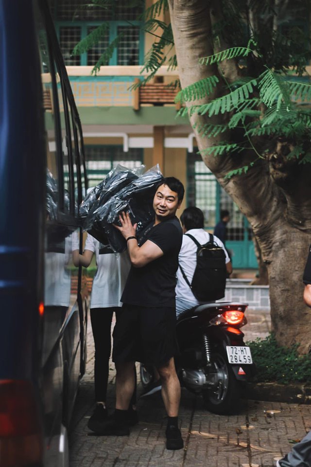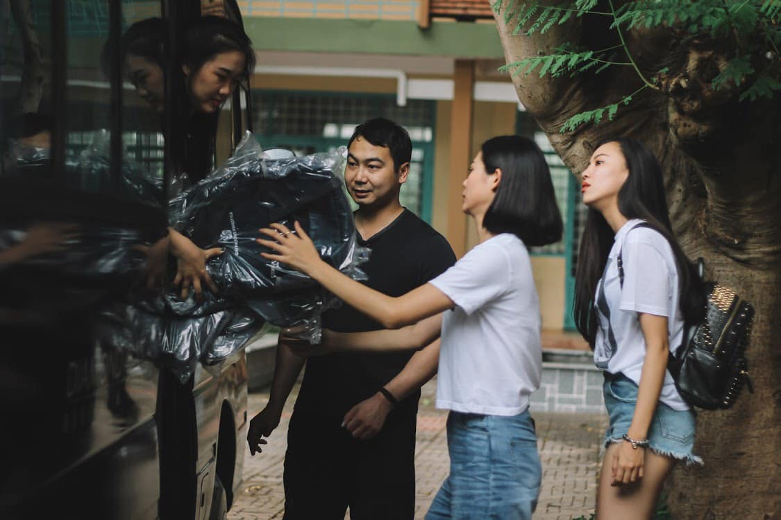Anh phụ giúp mọi người công việc khiêng vác đồ