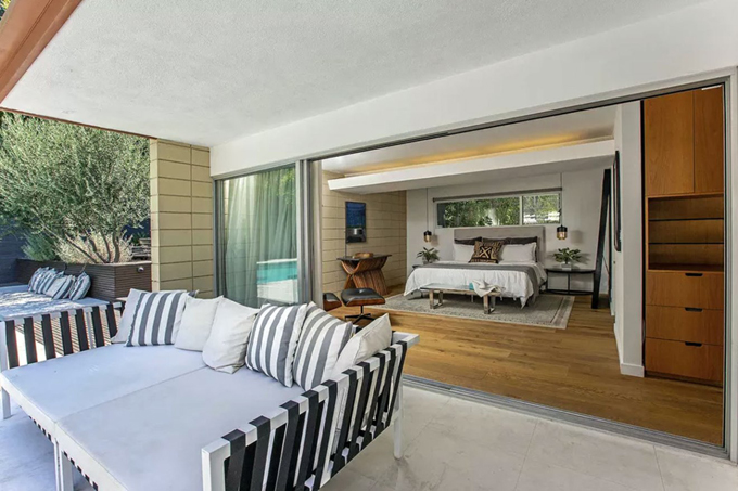 Phòng nghỉ bên bể bơi với lối kiến trúc trẻ trung