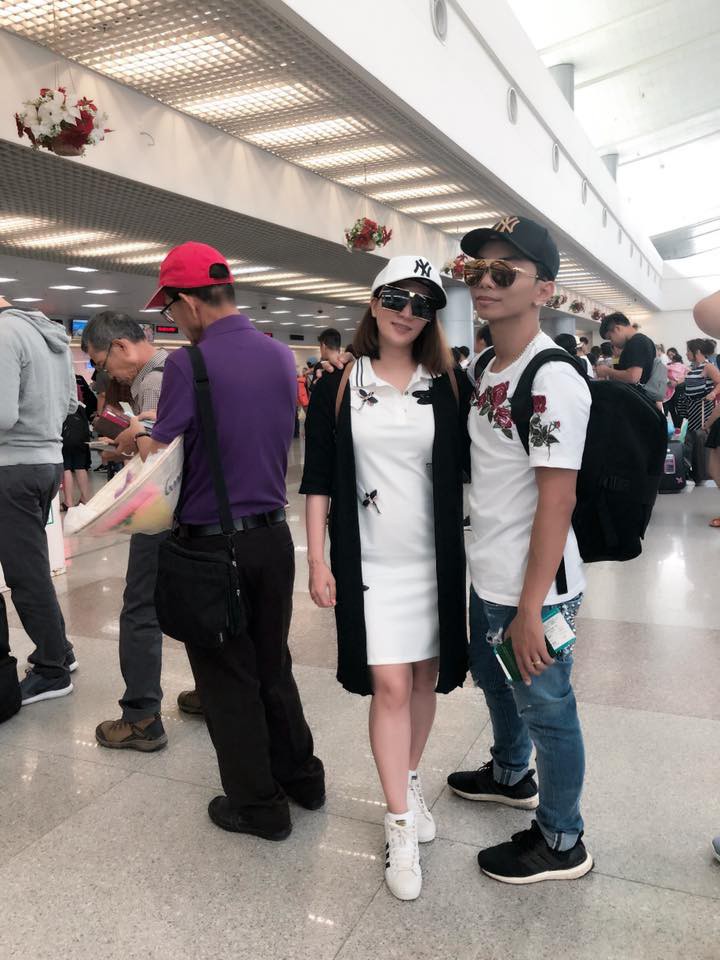 Đặc biệt, trong những tấm ảnh được đăng tải, Phan Hiển luôn ở bên âu yếm vợ. 2 vợ chồng nữ kiện tướng dancesport còn đội mũ đôi và mặc đồ ton-sur-ton trắng đen.