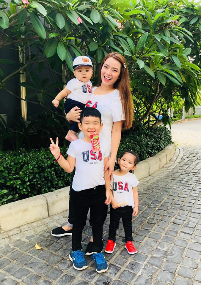 Hải Băng cùng 3 nhóc tì nhà mình dịp Tết vừa qua.