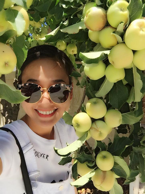 Những hình ảnh bên cây sai trĩu quả đủ thấy Dương Mỹ Linh yêu thiên nhiên thế nào và cô cũng rất khéo tay trong công việc này.