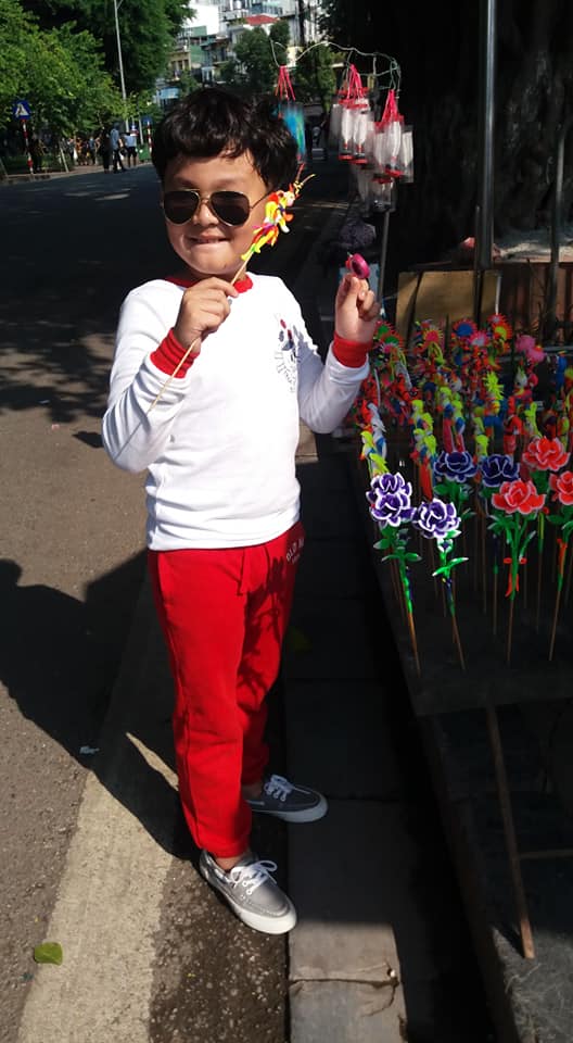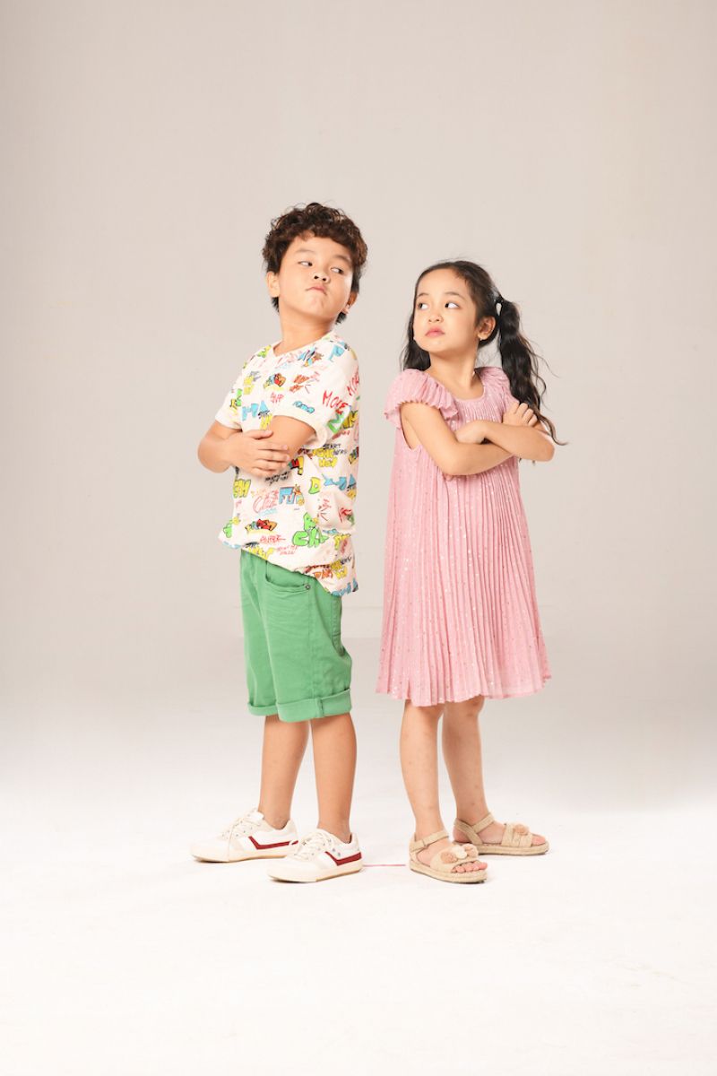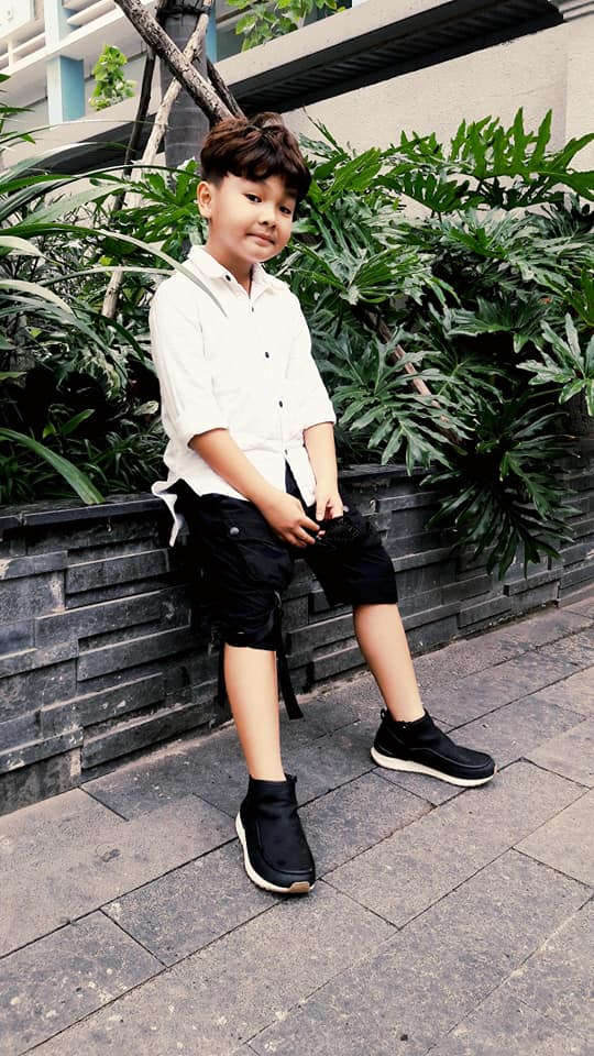 Trái với Chu Diệp Anh có gu thời trang phong phú, style của Hữu Khang thường ngày không khác trên phim là mấy, cậu bé ăn mặc vô cùng trẻ trung hợp lứa tuổi với các item cơ bản như short kaki, áo thun màu sắc.