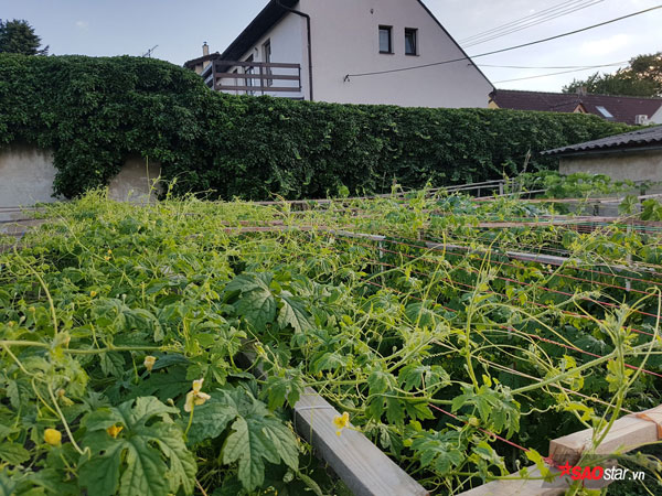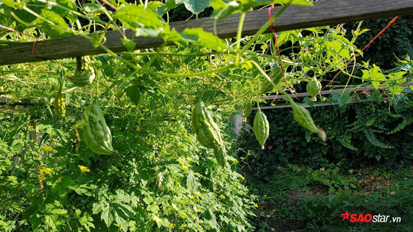 Những giàn mướp, bầu, mướp đắng sai trĩu quả nhưng đang trồng ở Việt Nam bên cạnh những loài rau như rau muốn, rau mồng tơi, húng… trong khu vườn nhận tới tấp lời khen.