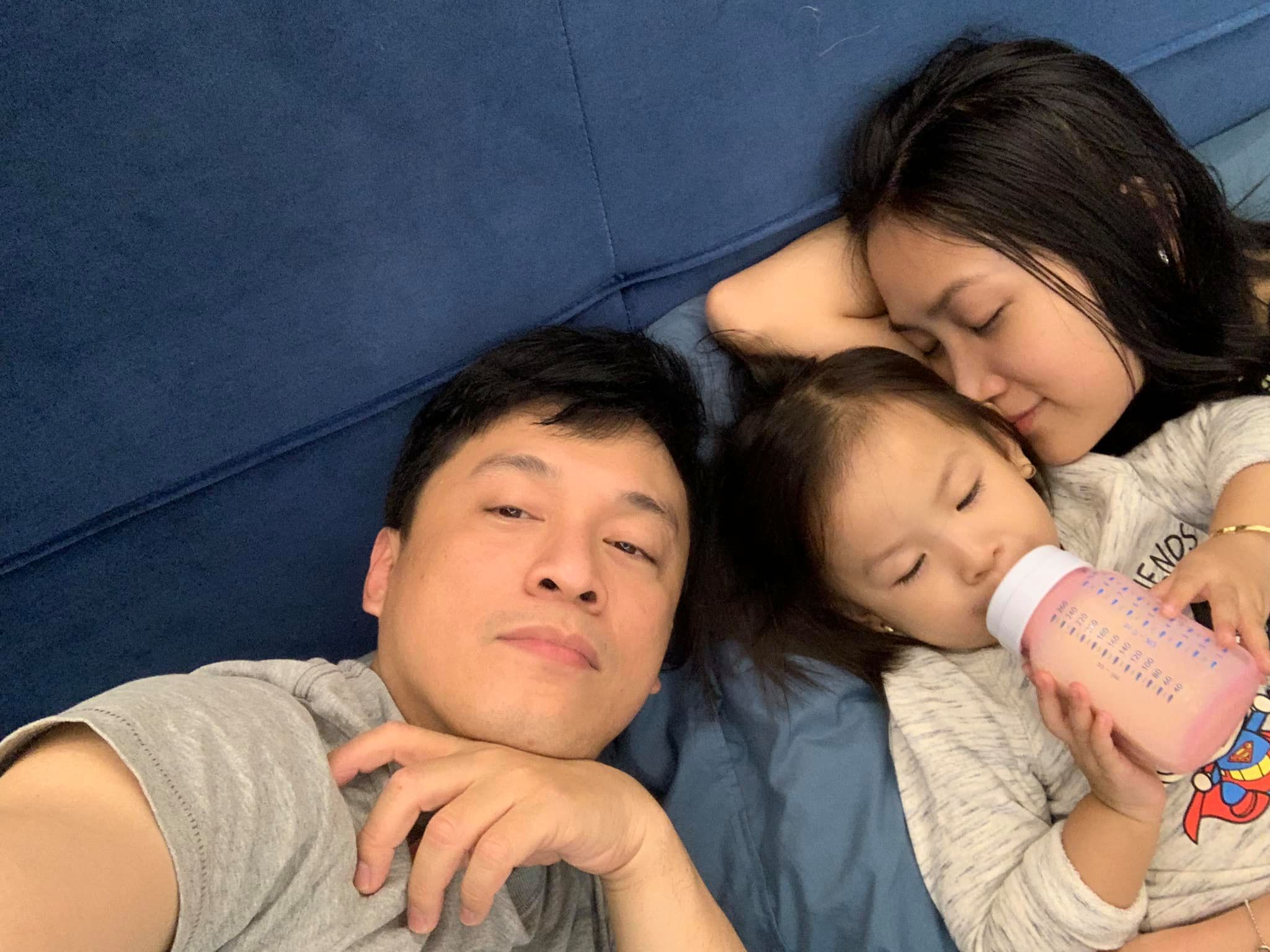 Anh cũng không quên tag bà xã Yến Phương vào hỏi xem có thấy con gái giống ba không