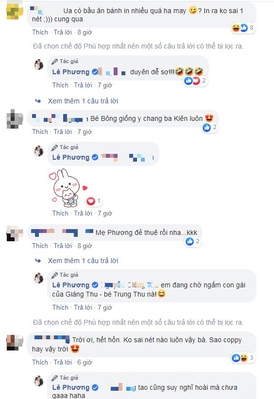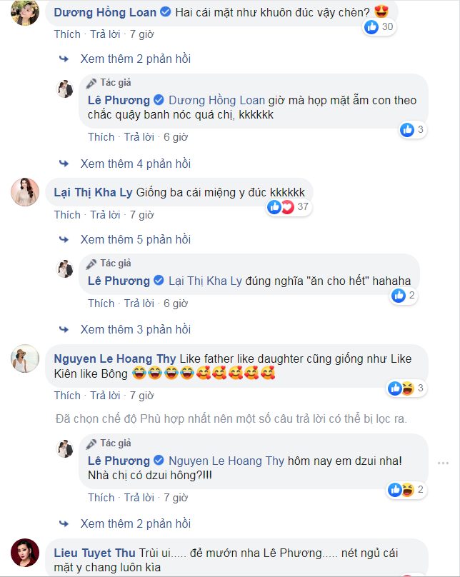 Sau khi chia sẻ, hình ảnh hai chồng và con gái ngủ say sưa của Lê Phương đã nhanh chóng nhận được hơn 15 nghìn lượt yêu thích và bình luận từ phía mọi người. Nhưng 'hẩm hiu' cho Lê Phương khi mà đa số bình luận đều trêu cô nàng đã 'đẻ thuê' vì thông qua bức ảnh có thể thấy ông xã Trung Kiên và con gái của cô giống nhau như đúc, nhất là khuôn miệng lúc đang ngủ.