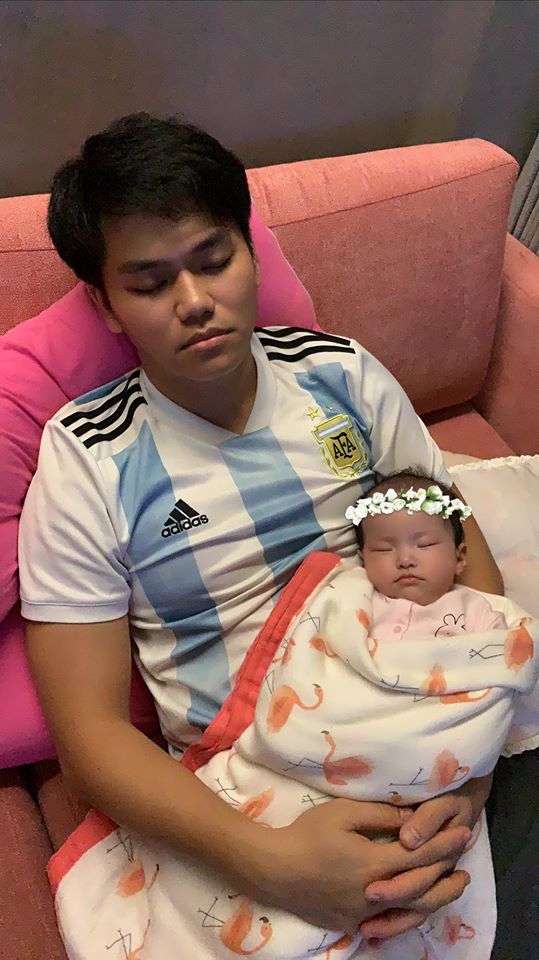 Mới đây, Lê Phương tiếp tục nhận được sự chú ý lớn từ người hâm mộ khi đăng tải hình ảnh ông xã Trung Kiên bế con gái đang ngủ say lên trang cá nhân của mình. Nữ diễn viên 'Gạo nếp gạo tẻ' còn hào hứng chia sẻ với dòng chú thích cổ vũ, ủng hộ đội tuyển bóng đá Việt Nam trước trận chung kết Seagame 30,