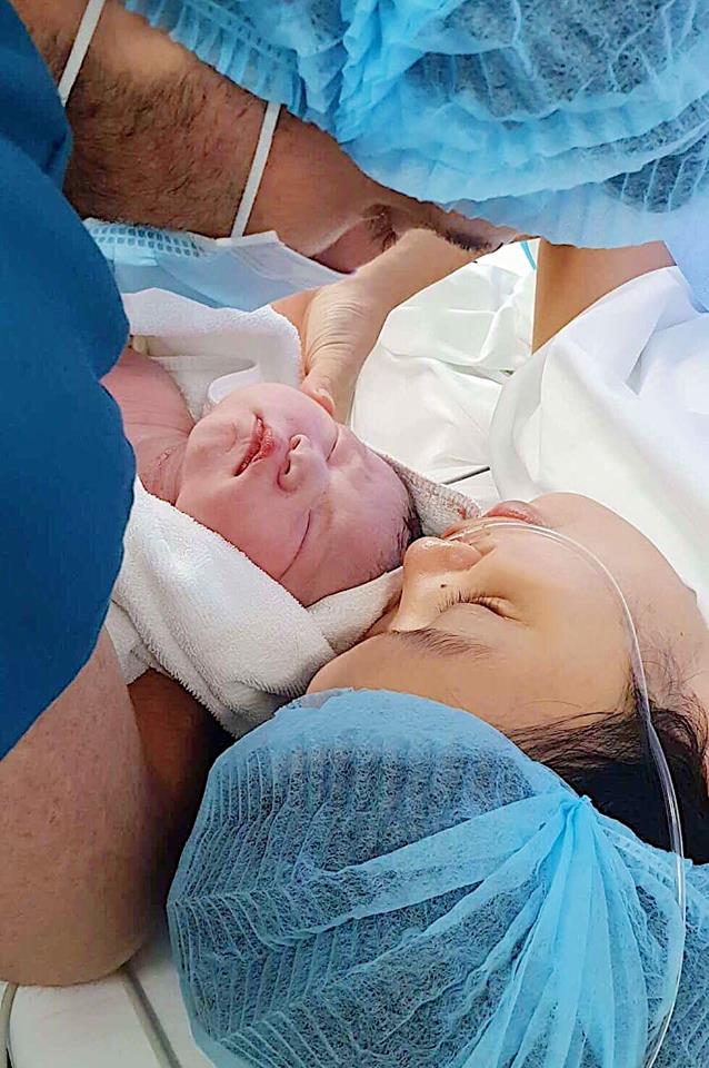 Trước đó ít ngày, cả gia đình cũng đã “khăn gói” vào viện để chuẩn bị nhưng cuối cùng bác sĩ cho về vì chưa có dấu hiệu. Hôm nay thì công chúa nhỏ đã chịu ra gặp mặt cả nhà rồi.