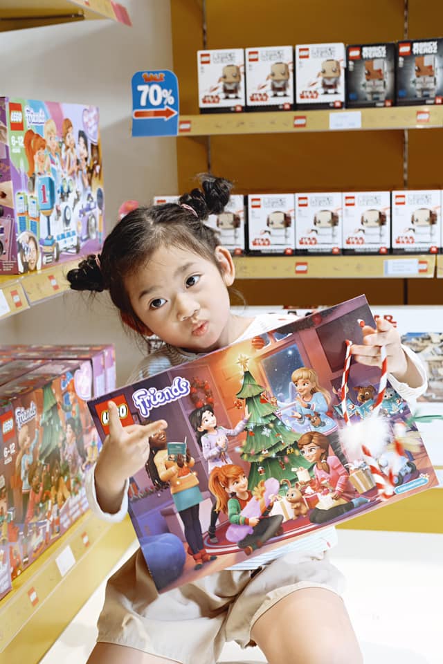 Hai mẹ con chơi xe đẩy với nhau trong trung tâm thương mại