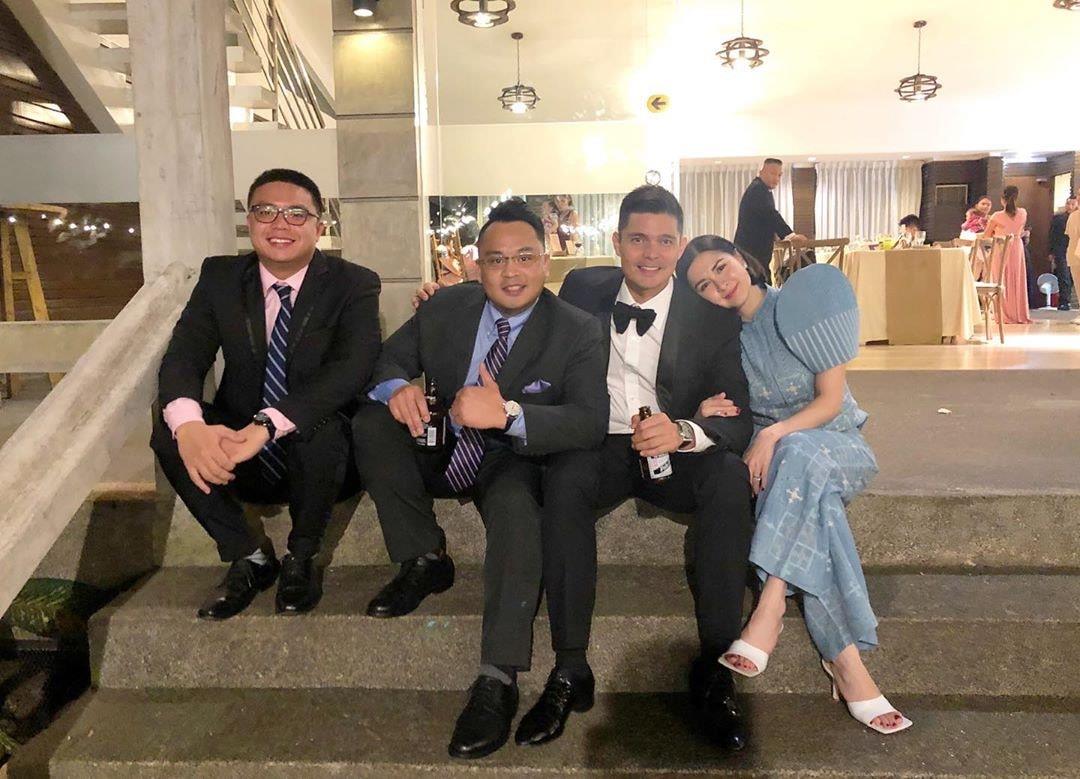 Cả hai tình cảm chụp hình cùng nhau tại tiệc cưới em trai Dingdong.