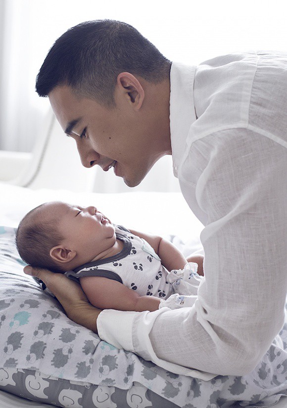 Anh thường xuyên ẵm bé và nhờ vợ chụp hình cho 2 bố con.