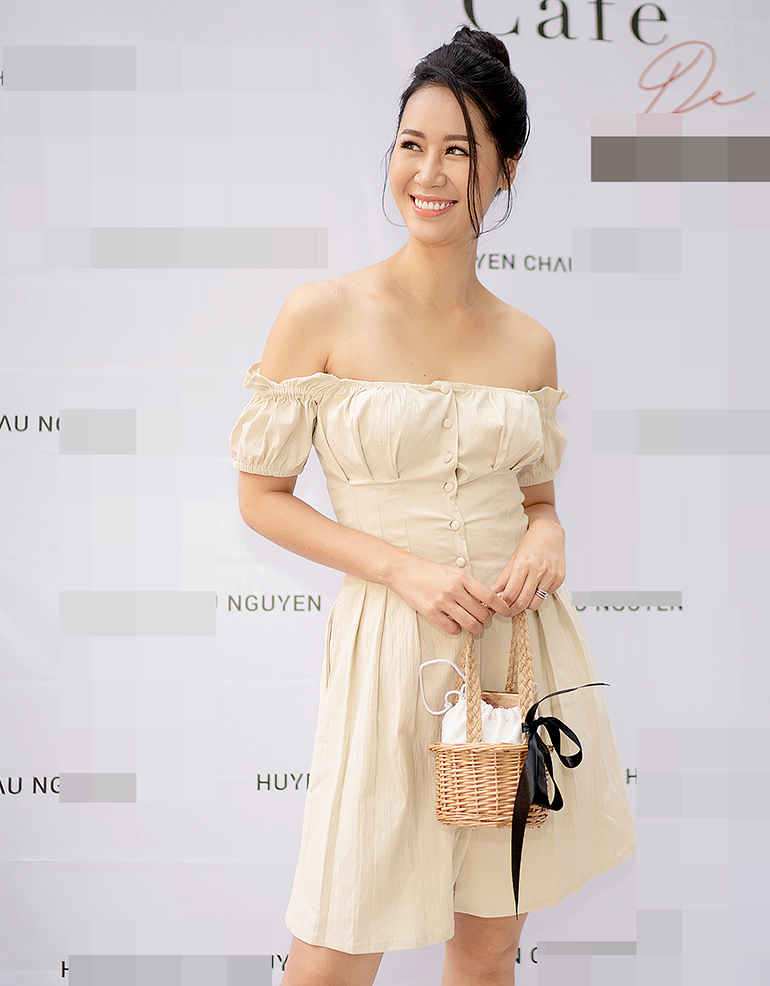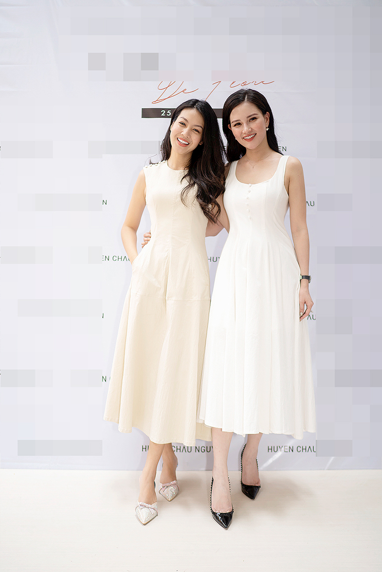 Trong khi Huyền Châu điệu đà với váy midi mềm mại, Dương Thùy Linh gợi cảm khoe đường xương quai xanh trong chiếc váy trễ vai thì MC Minh Trang lại mũm mĩm xinh xắn trong chiếc đầm suông trắng muốt. Đây là lần đầu cô xuất hiện trước công chúng sau khi khoe đã mang thai lần thứ 4.