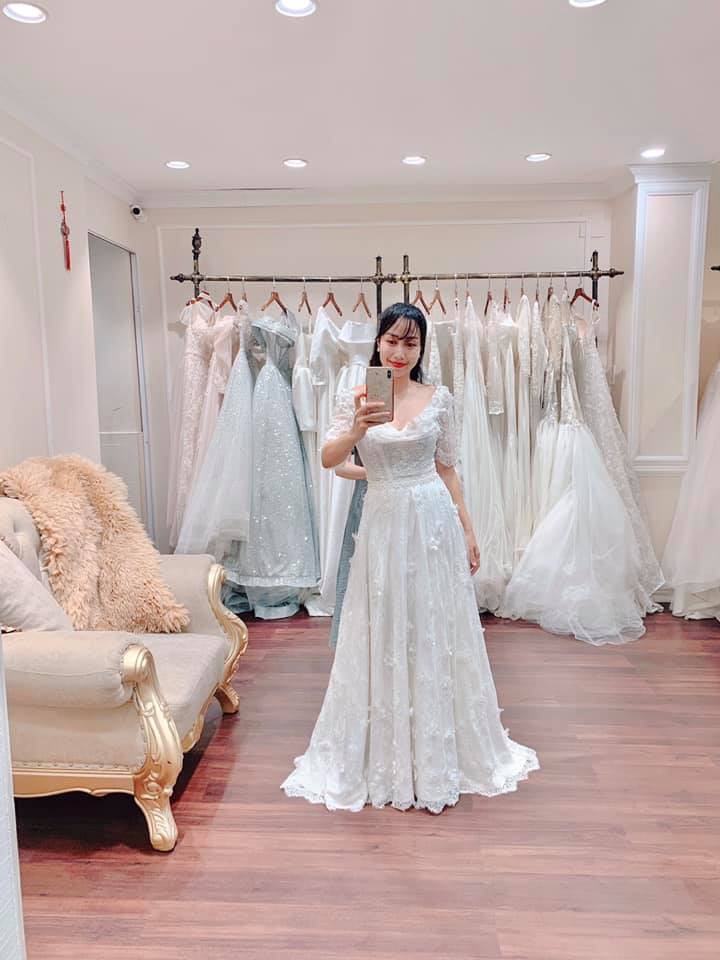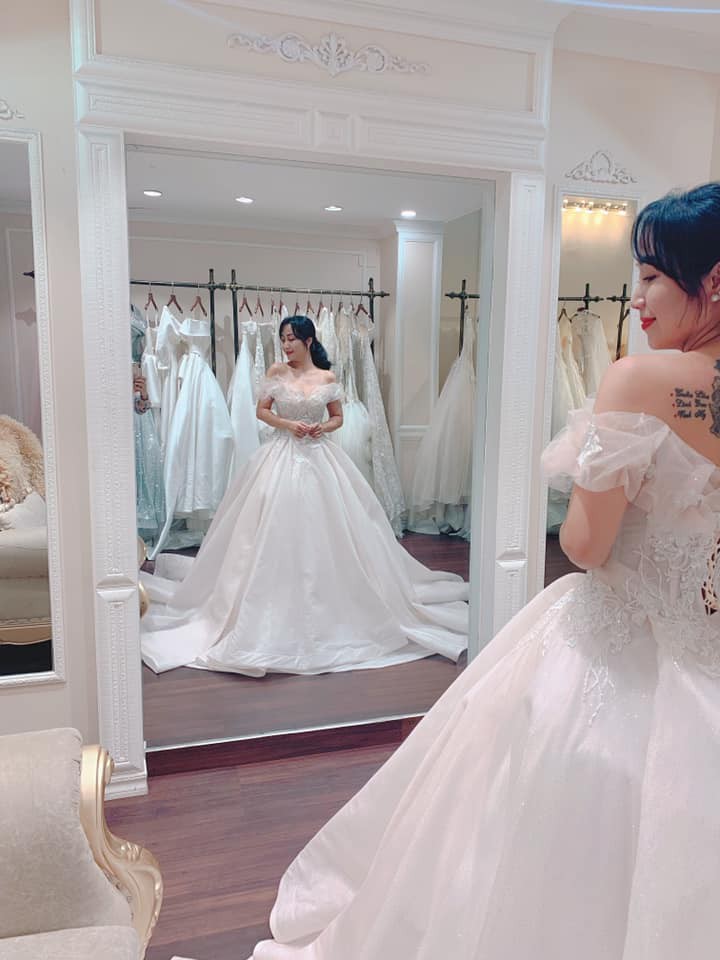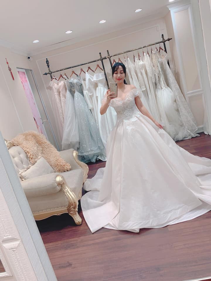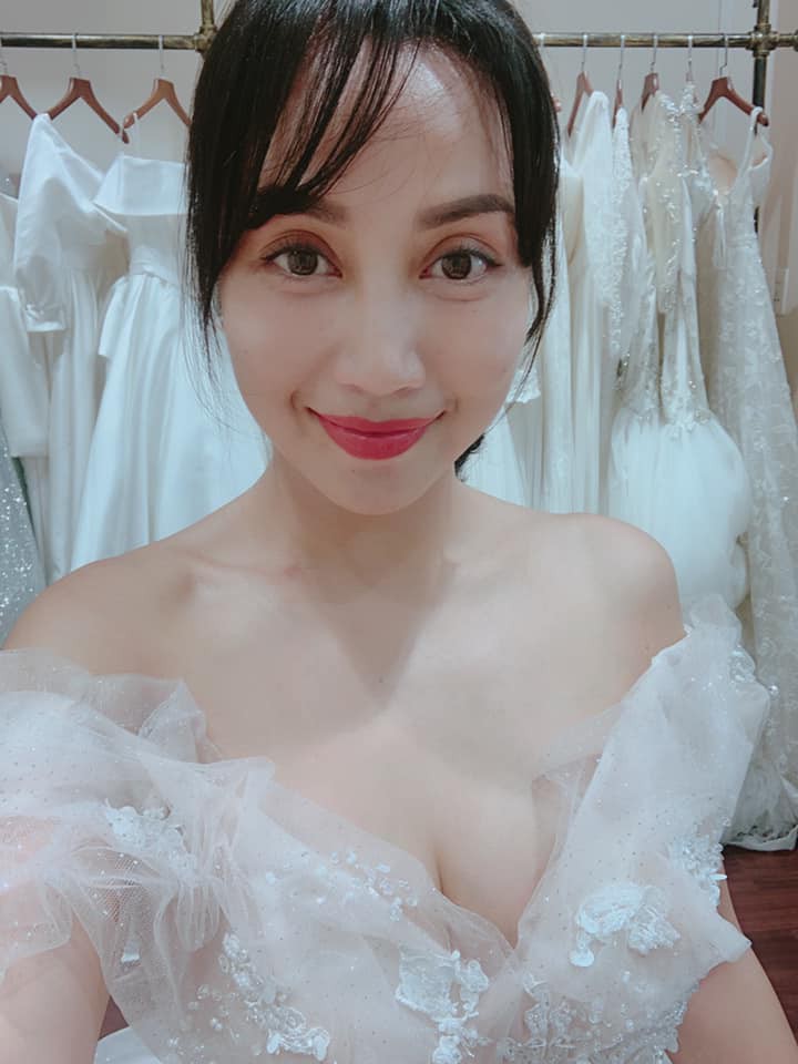 Ốc Thanh Vân diện váy cưới trắng tinh khôi.