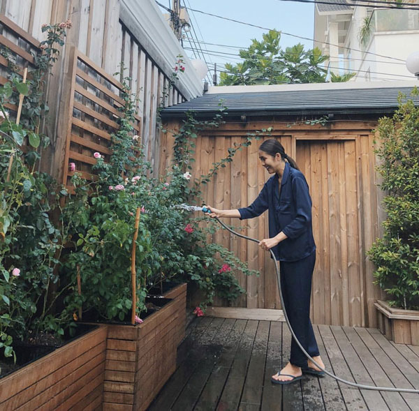 Trên Instagram cá nhân, thời gian gần đây cô liên tục khoe những bông hoa hồng trong vườn nhà do chính tay cô chăm sóc, nuôi nấng.