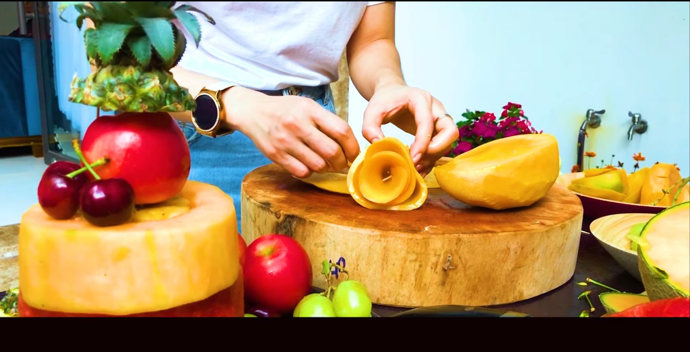 Mỹ Tâm chứng minh cho sự khéo tay của mình khi làm bông hoa từ xoài nữa, thật là đảm đang quá đúng không nào!