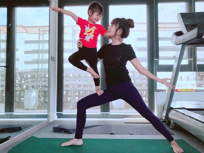 Tập luyện cùng con. Thế này thì các bé nhà Lý Hải cũng hứa hẹn có hình thể đẹp như bố mẹ mà thôi.