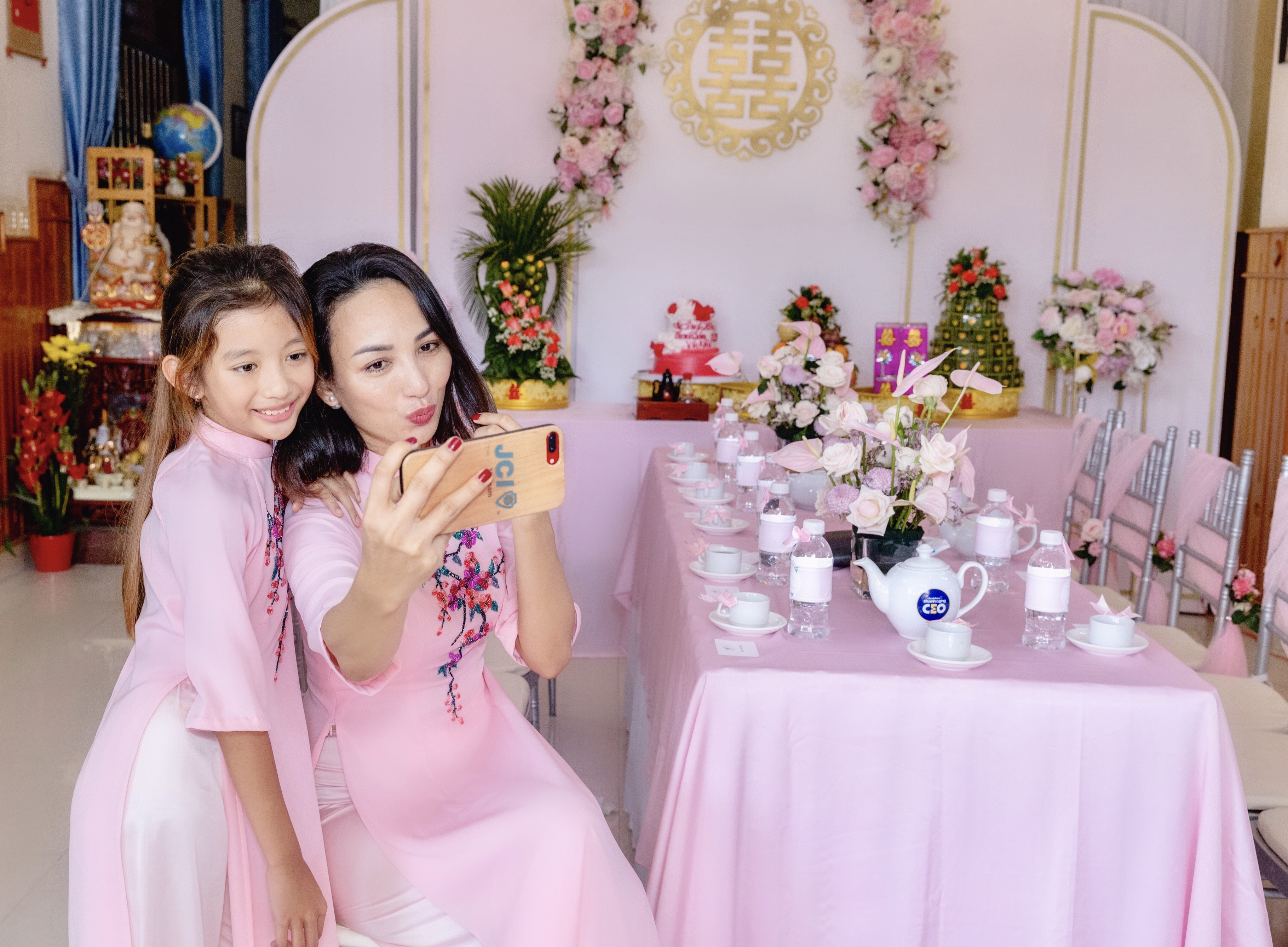 Hoa hậu Ngọc Diễm cùng con gái cưng Chiko xinh đẹp và rạng rỡ trong ngày đính hôn của em gái Hoa hậu