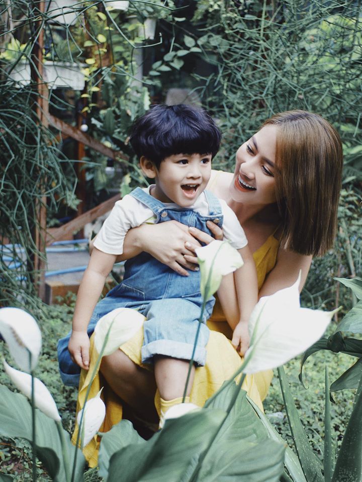 Tuy nhiên thời gian gần đây cô đã thoải mái hơn và thường xuyên nhắc đến Thanh Bình mỗi khi chia sẻ về con trai.