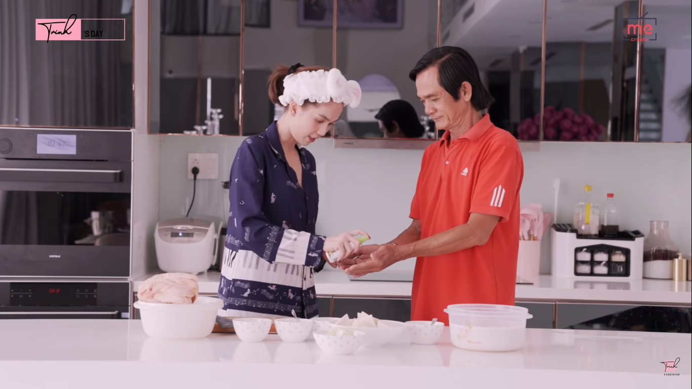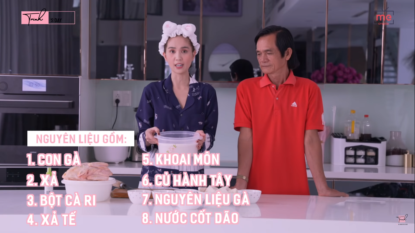 Mới đây, Ngọc Trinh khiến người hâm mộ vô cùng thích thú khi chính thức gia nhập hội “các sao Việt tranh thủ những ngày ở nhà vào bếp trổ tài nấu nướng”. Theo đó, trên trang cá nhân của mình, “nữ hoàng nội y” đã hào hứng chia sẻ đoạn clip ghi lại quá trình lần đầu vào bếp trổ tài nấu ăn dưới sự hướng dẫn của ba ruột cùng dòng chú thích kêu gọi: “Cả nhà zô mà xem Bảy Tòng dạy Trinh Trinh nấu cà ri gà nè” .