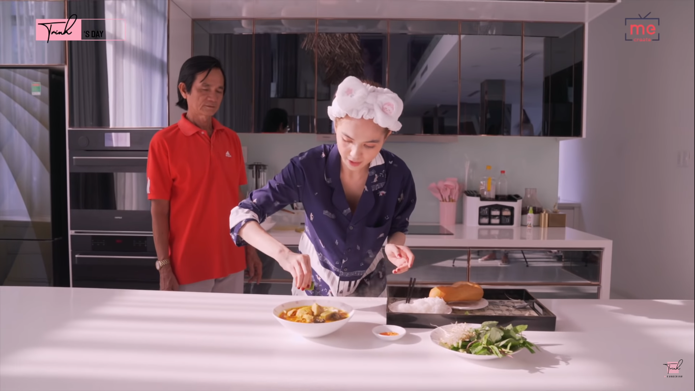 Trong suốt quá trình chế biến món cà ri, Ngọc Trinh đã gặp không ít vất vả trong khâu chặt thịt gà. Người đẹp chia sẻ do từ nhỏ đến lớn ba cô luôn yêu chiều con gái, không cho con gái nấu ăn nên cô hầu như không phải vào bếp hay chế biến những món ăn phức tạp và tốn nhiều thời gian như thế này.