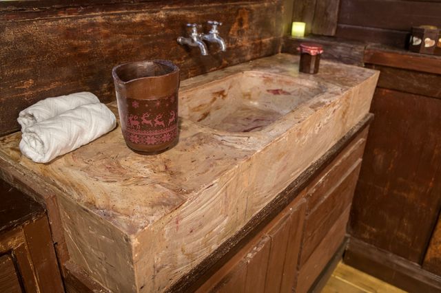 Ngay cả cốc uống nước, bồn rửa mặt cũng được làm bằng socola.