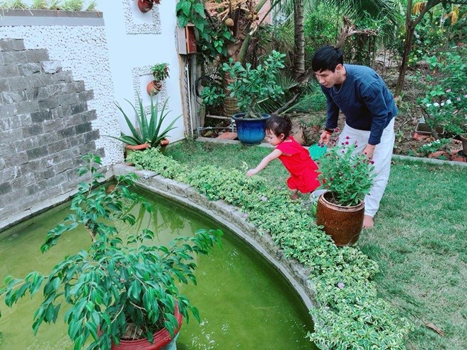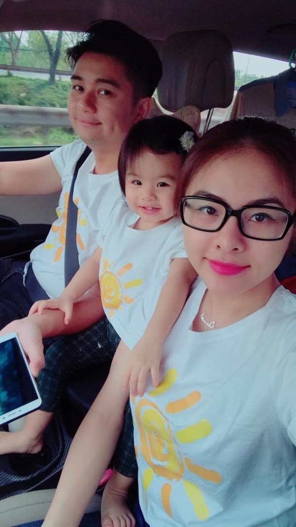 Vân Trang cũng không kém cạnh khi cùng chồng và con gái mặc chung kiểu áo giản dị nhưng vẫn rất đáng yêu.