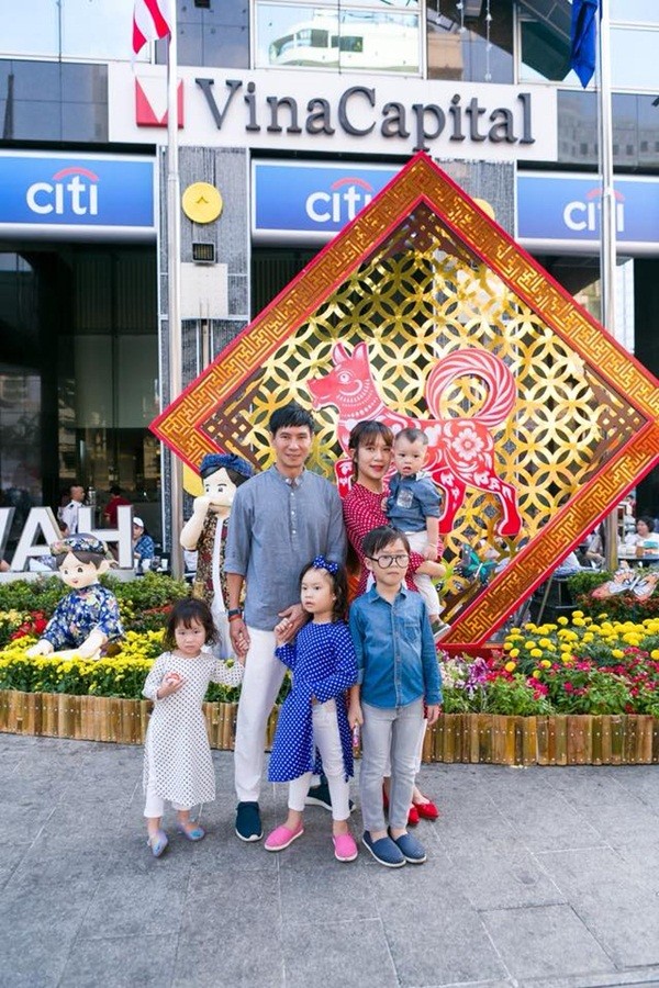 Lý Hải đưa gia đình tham quan đường hoa Nguyễn Huệ.