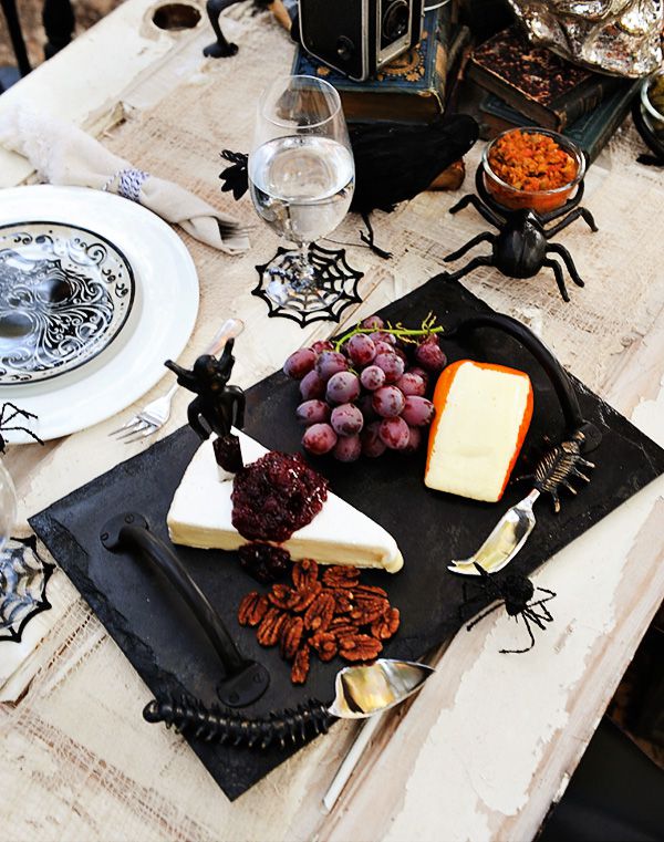 Một bàn tiệc được bố trí khá lạ mắt với những chi tiết mang không khí Halloween.