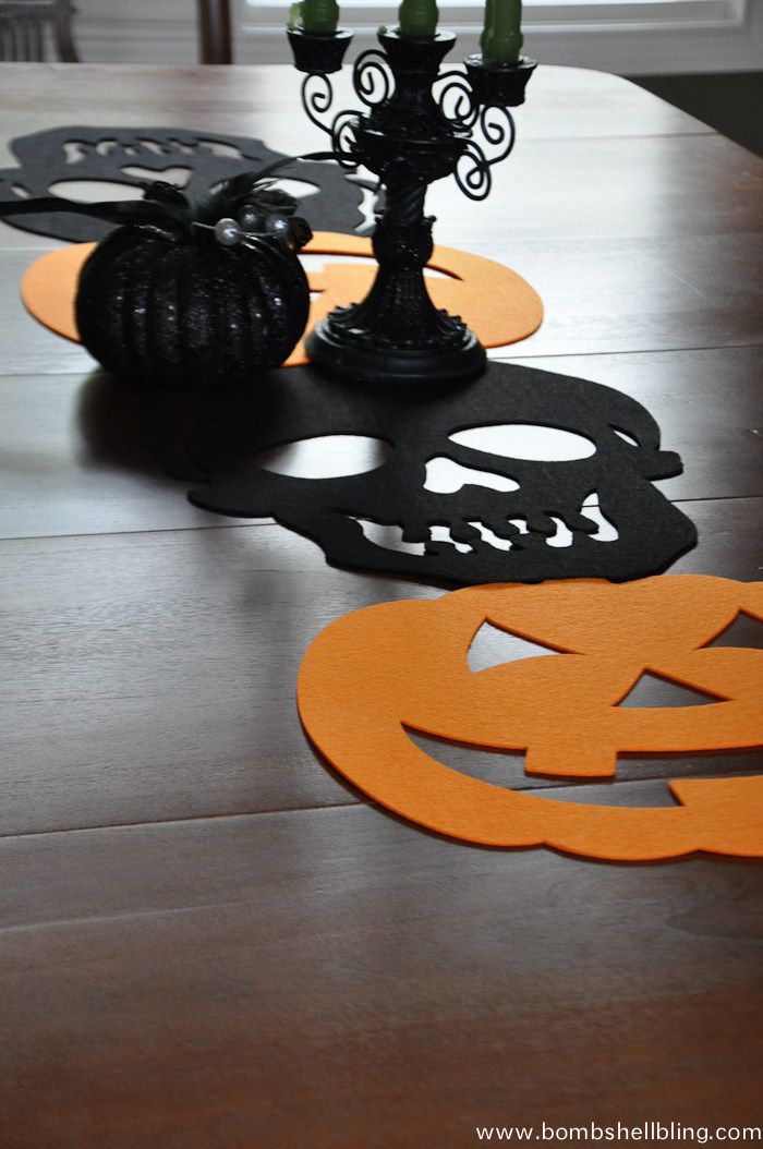 Những miếng lót bàn hình sọ đầu lâu cùng với nến đen đủ để tạo ra sự rùng rợn.
