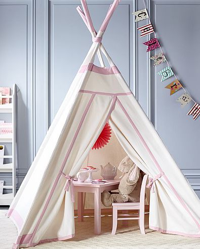 Với những bé gái thì bạn có thể cho bé một chiếc lều màu sắc đáng yêu thế này cùng tiệc trà với thú nhồi bông nhé.