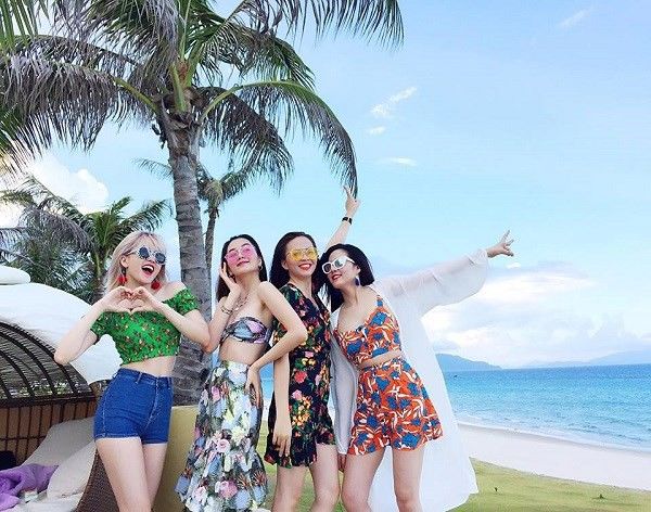 Mẹ Thiều Bảo Trâm trẻ trung, xì tin bên ba cô con gái của mình.