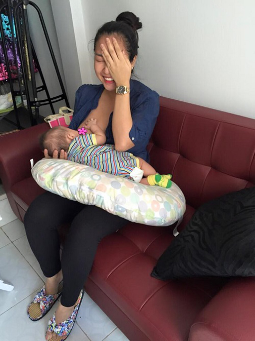 Á hậu Diễm Trang cười rạng ngời khoe ảnh đang cho con bú.