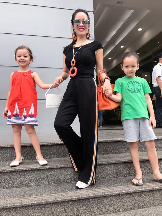 Hai con của nữ diva tỏ ra vô cùng dạn dĩ trước ống kính máy ảnh. Khi Tôm được mẹ định hình phong cách cá tính, mạnh mẽ thì Tép lại được mẹ tạo dấu ấn riêng với phong cách thời trang nhẹ nhàng như một tiểu thư.