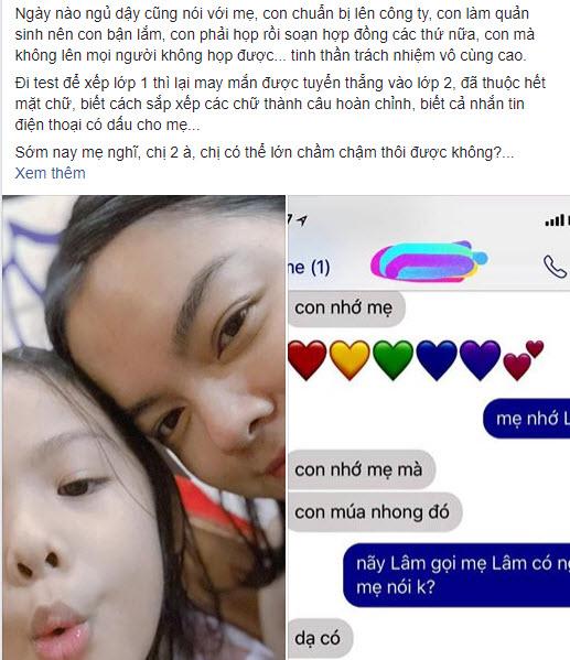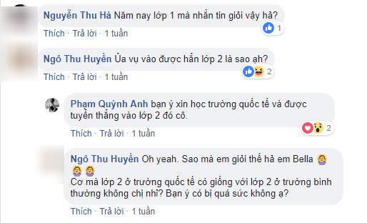 Phạm Quỳnh Anh hài hước chia sẻ trên facebook: “Đi test (kiểm tra) để xếp lớp 1 thì lại may mắn được tuyển thẳng vào lớp 2, đã thuộc hết mặt chữ, biết cách sắp xếp các chữ thành câu hoàn chỉnh, biết cả nhắn tin điện thoại có dấu cho mẹ…”
