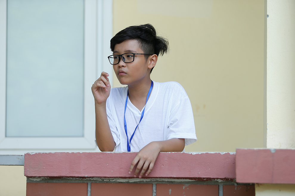 Khác hẳn với vai bé Trâm Anh “ghê gớm” trong phim “Những cô gái trong thành phố”, Hà Anh đời thường lại vô cùng dễ thương, luôn tự tin và trả lời lưu loát khi đối diện với đồng chí chỉ huy nghiêm khắc.