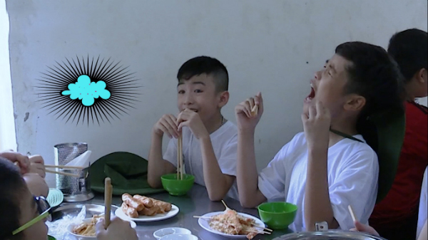 Tôm chiên xù và xúc xích chiên xuất hiện trong bữa ăn đầu tiên của chương trình 'Sao nhập ngũ - Những chiến binh tí hon'