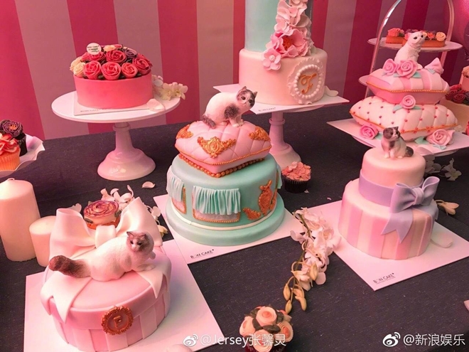 Những chiếc bánh kem được trang trí bằng các chú mèo - con vật yêu thích của nữ diễn viên.