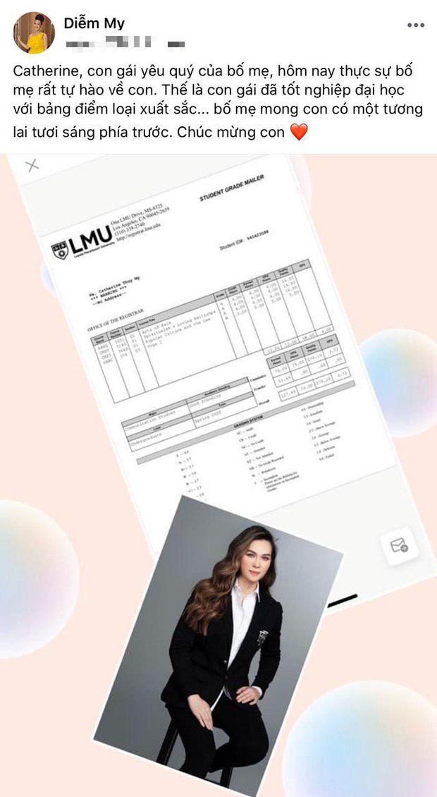 Catherine /Thùy My, con gái lớn của nữ nghệ sĩ Diễm My 6X cũng vừa tốt nghiệp đại học với bảng điểm xuất sắc