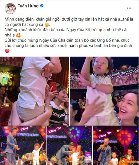 Cũng là một ông bố ba con, Tuấn Hưng kỷ niệm “Ngày của cha” bằng loạt khoảnh khắc thú vị của con trai Su Hào khi cậu bé xung phong lên hát cùng với bố trên sân khấu.
