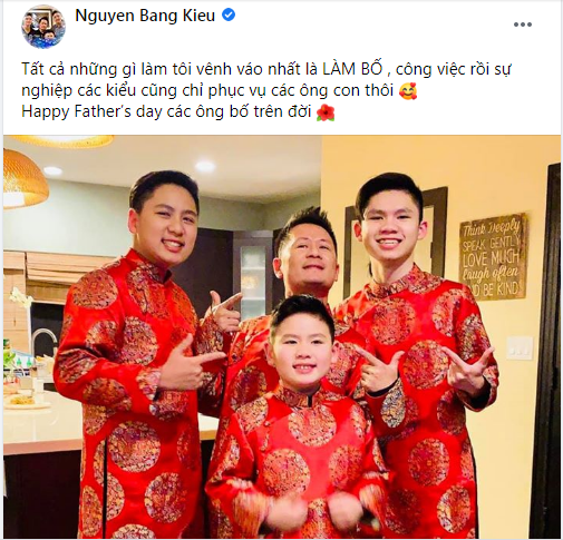 Là bố của 3 người con trai, Bằng Kiều đã tiết lộ trên trang cá nhân về điều khiến anh tự hào nhất trong cuộc đời không phải là sự nghiệp mà là được làm bố.