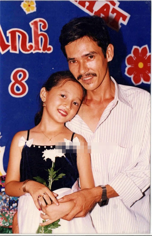 Bảo Anh bên bố lúc nhỏ. Nữ ca sĩ được nhận xét thừa hưởng sống mũi cao và khuôn miệng y bố