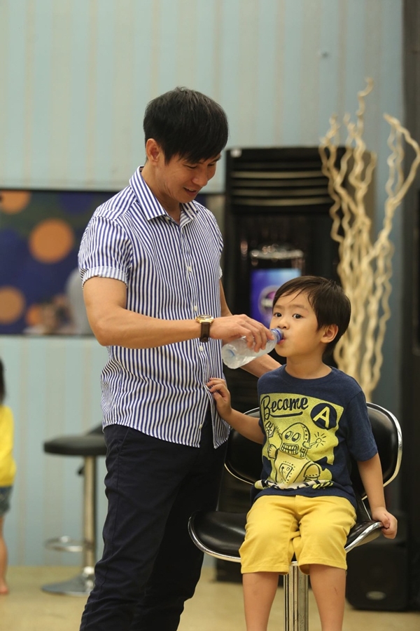 Đi diễn vẫn tranh thủ lo cho con no đủ.