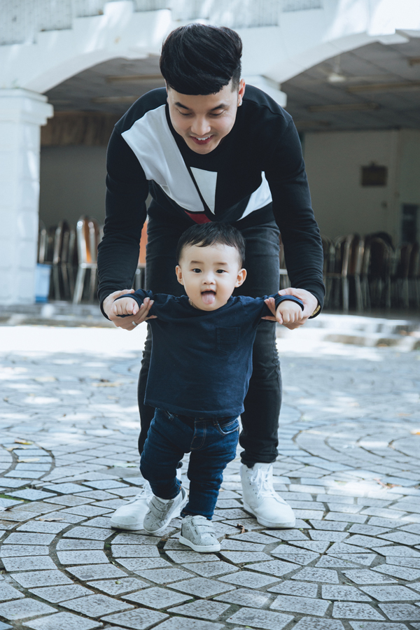 Những bước đi đầu tiên của con luôn có anh bên cạnh.