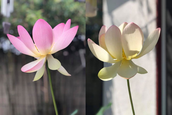 Cây sen trong khu vườn của Dương Mỹ Linh khoe sắc, người đẹp chia sẻ sen nở mỗi hôm một màu và có sự thay đổi dần theo thời gian.