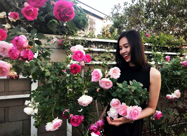 Từng nhiều lần khoe những cây hồng sai trĩu hoa như trong tranh, dạo gần đây Dương Mỹ Linh tiếp tục khoe những loài cây hoa trái khác trong khu vườn của mình.