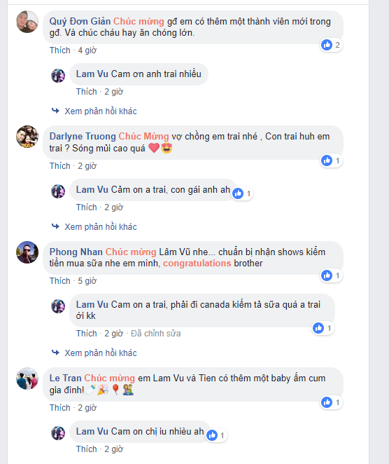 Kể về quá trình mang thai gian khổ của mình, bà xã Lâm Vũ cho biết cô được anh xã chăm sóc chu đáo và yêu chiều hết mực. Dù khá bận với công việc ca hát nhưng Lâm Vũ luôn dành thời gian bên cạnh quan tâm, chăm sóc vợ từng chút một. Bạn bè của 2 người phong cho anh danh hiệu “người đàn ông của năm”.